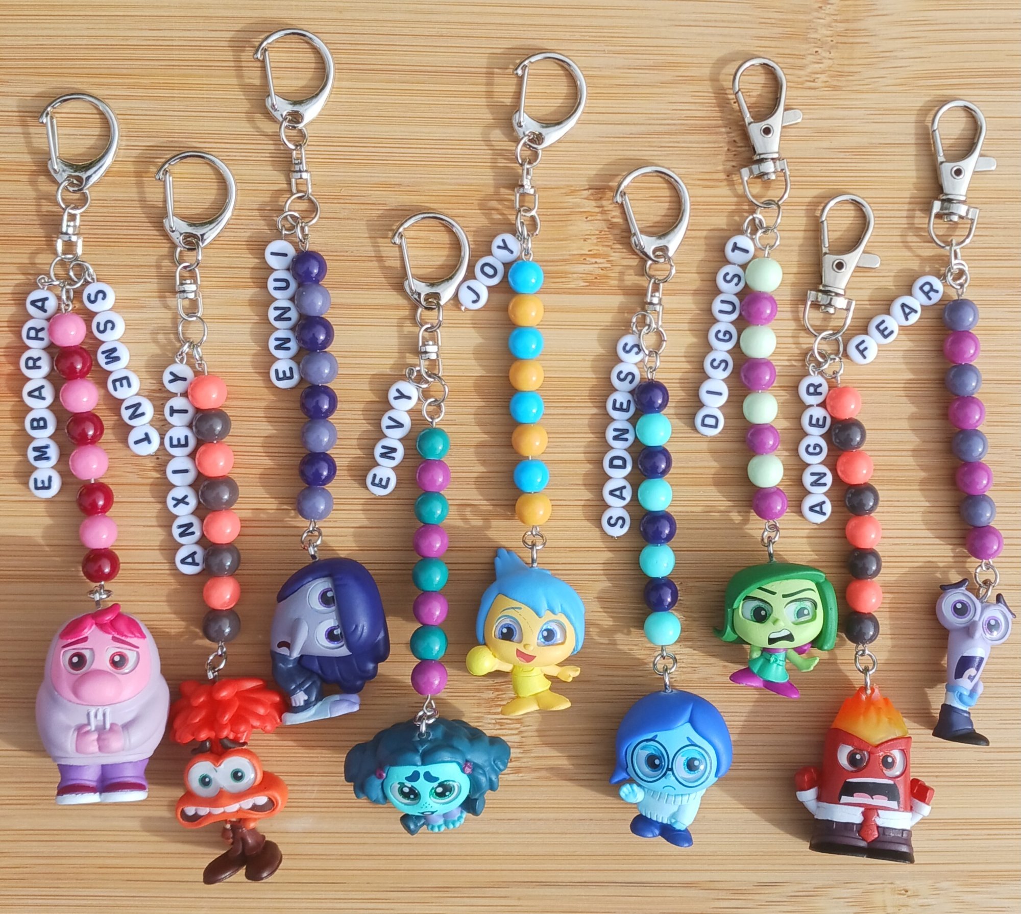 Add a touch of Disney magic to your keys, bags, or backpacks with these handmade keychains featuring authentic Inside Out Disney Doorables figures! Each figure has been carefully cleaned and converted into a unique accessory.
