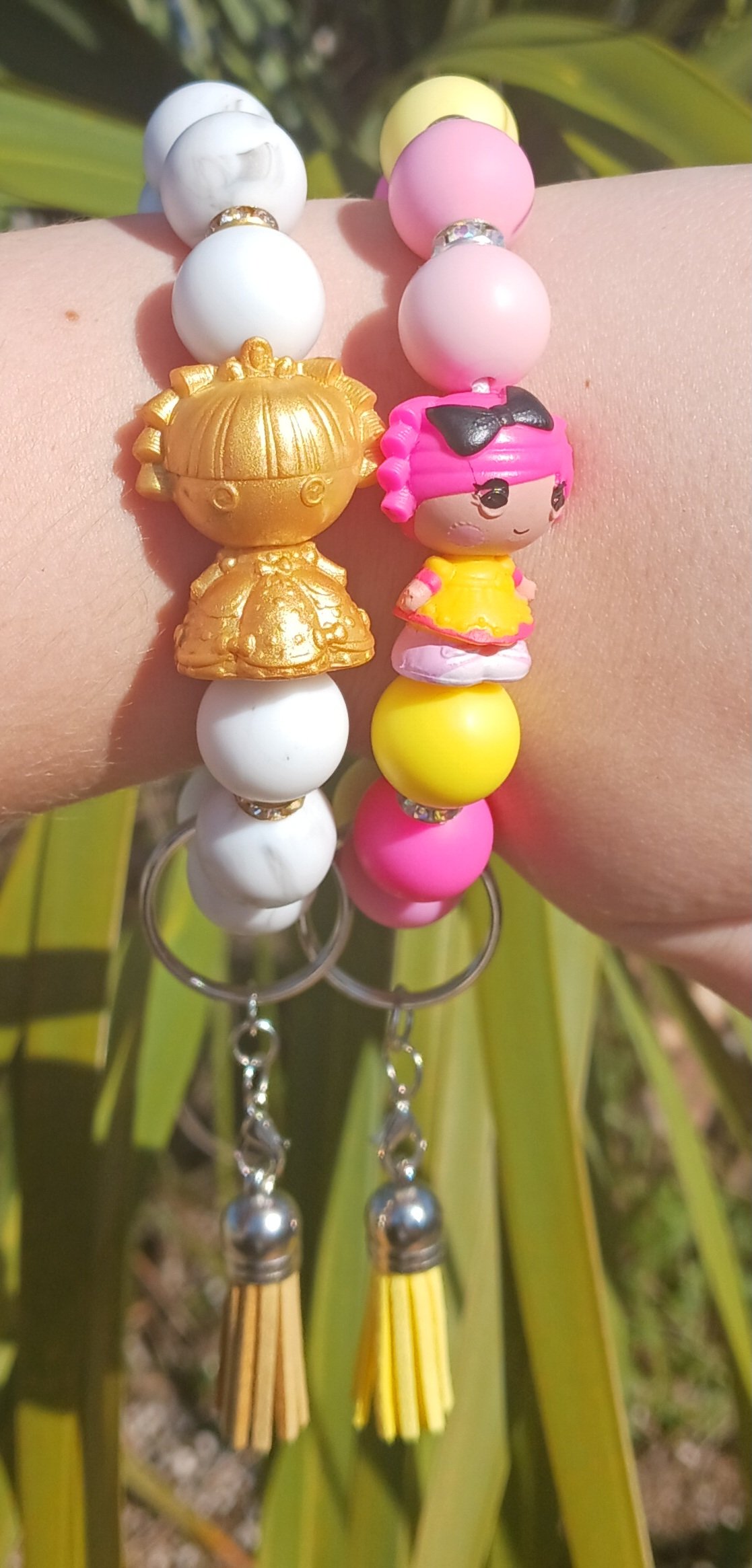 Each wristlet features a pre-owned Lalaloopsy figure that has been cleaned and sanitized. Please note that figures may show minor marks or scratches due to previous use.