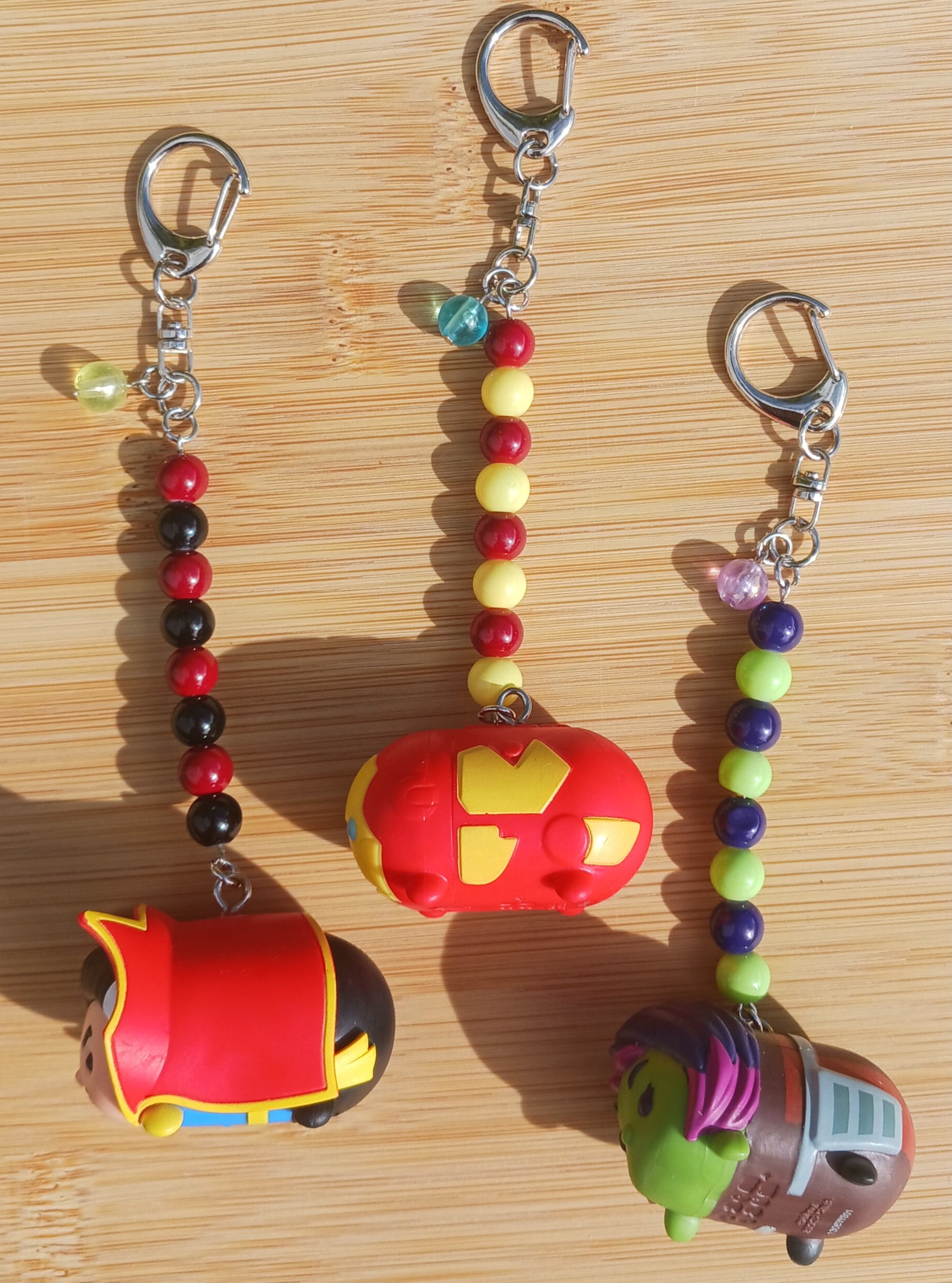 Show off your superhero style with these unique keychains made from genuine Marvel Tsum Tsum figures! Each figure has been carefully cleaned and turned into a fun accessory that’s perfect for your keys, bags, or backpacks.