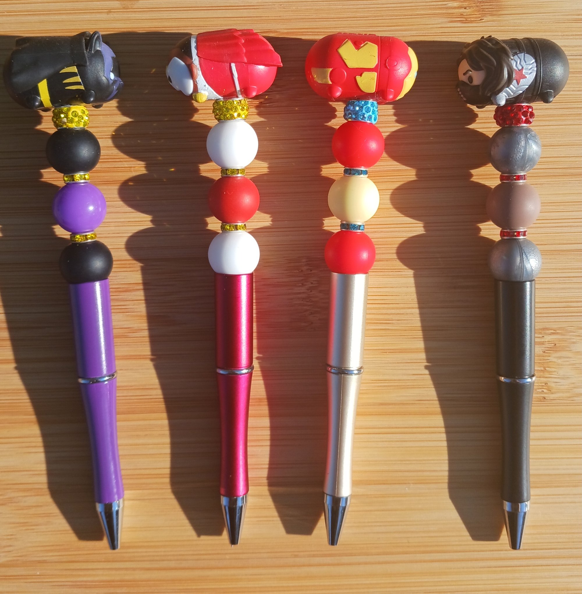 Bring some superhero style to your writing with these beaded pens featuring Marvel character toppers! Each pen is decorated with coordinating beads and a fun Marvel figure on top. They write in black ink and come with two extra black ink refills, so you're ready for action anytime.