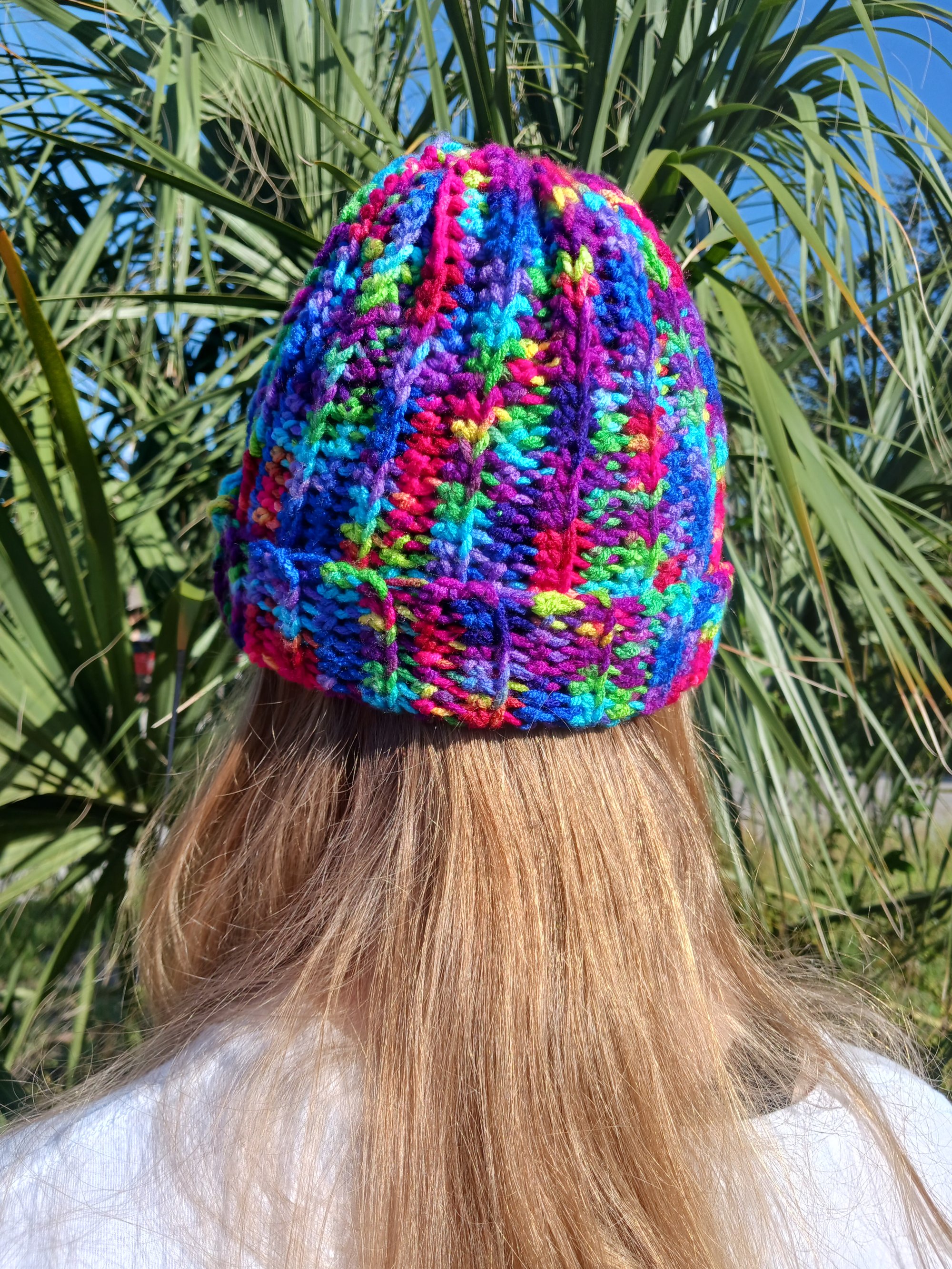 Brighten up any outfit with this bold and vibrant rainbow beanie! Made for adults who love to stand out, this cozy hat adds a fun pop of color while keeping you warm through chilly days.