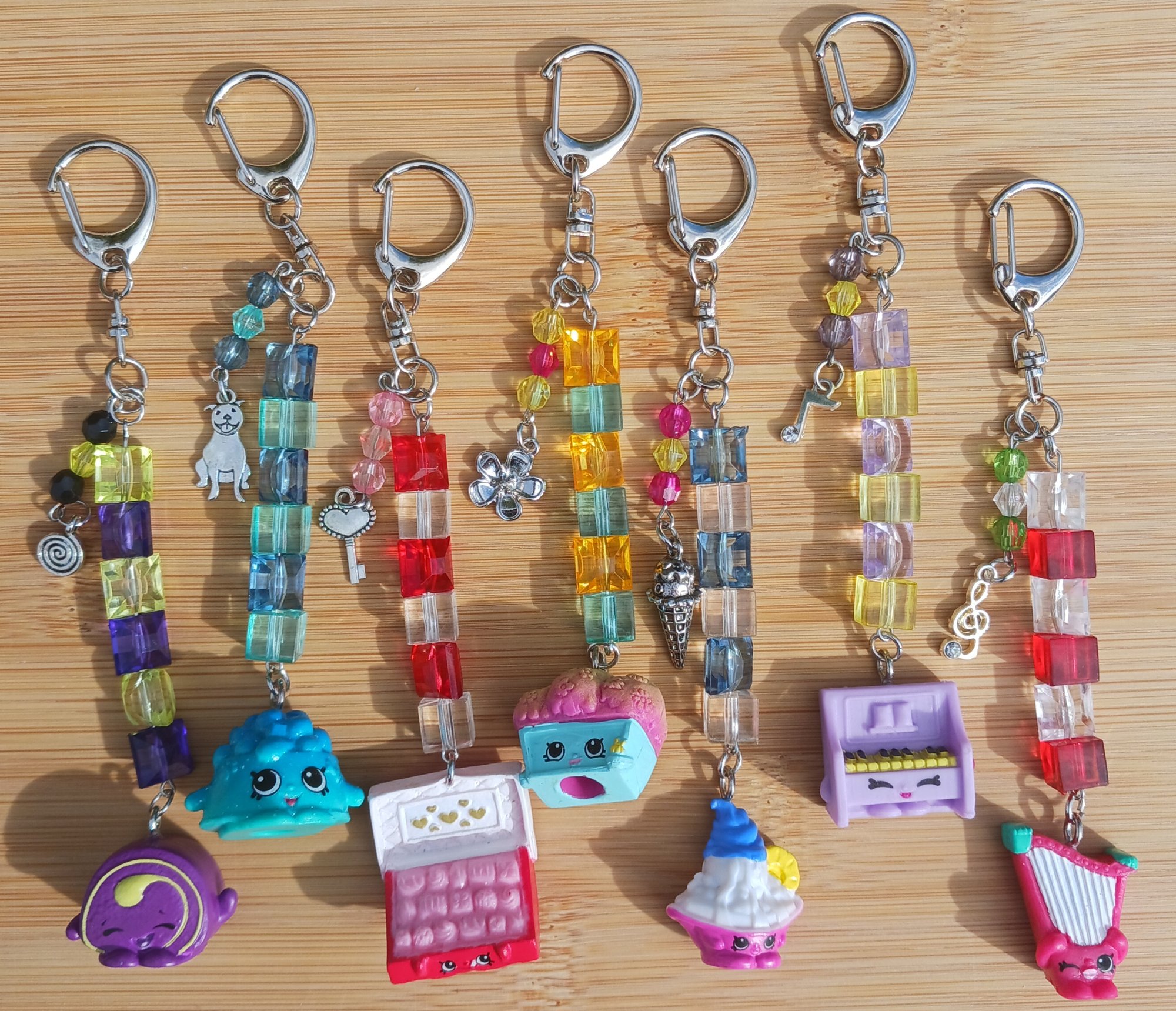 Bring a pop of cuteness to your everyday essentials with these fun and colorful keychains made from authentic Shopkins figures! Each one is carefully cleaned and transformed into a cute, collectible accessory perfect for keys, backpacks, or purses.